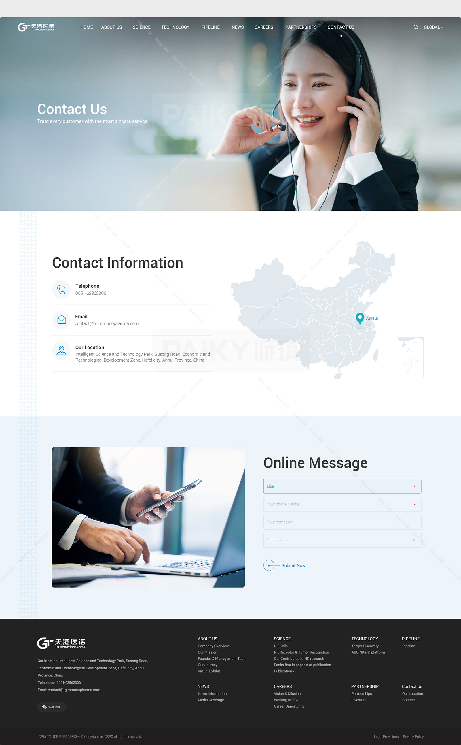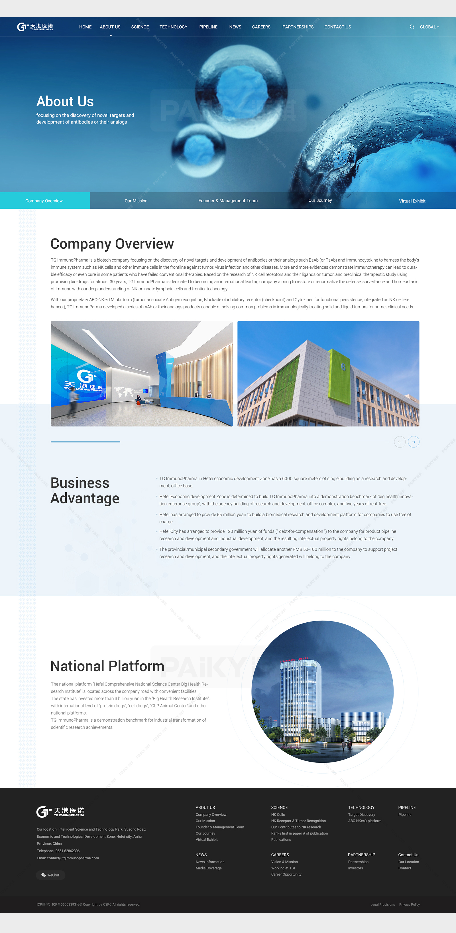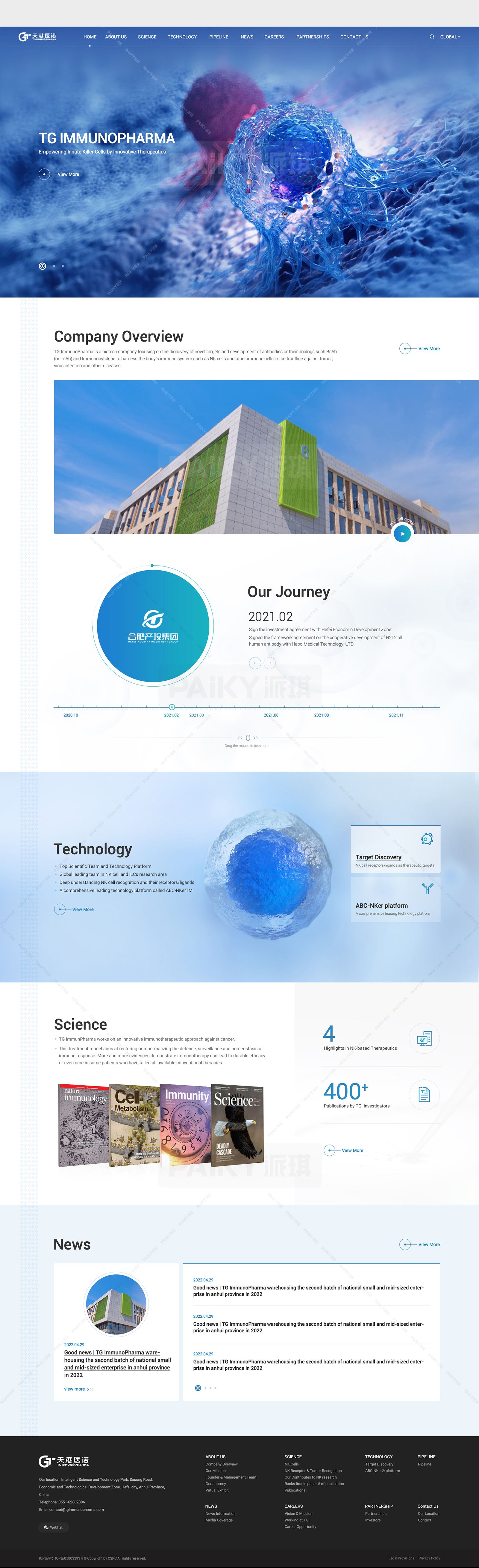 合肥天港免疫药物有限公司是一家专注于新靶点的发现和抗体或其类似物的开发的生物技术公司,如BsAb(或TsAb)和免疫细胞因子,利用人体免疫系统,如NK细胞和其他免疫细胞在第一线对抗肿瘤,病毒感染和其他疾病....