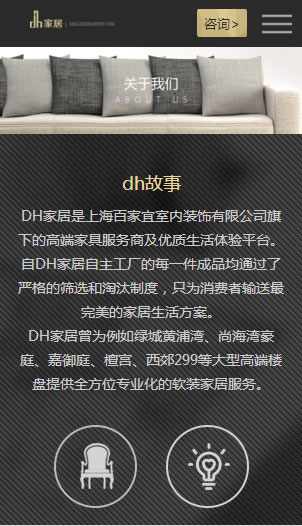 DH家居拥有国内外一线奢侈品生产线,主要为消费者提供完美家居生活方案,10年设计制造经验,形成自有品牌、市场品牌及国际合作品牌。
